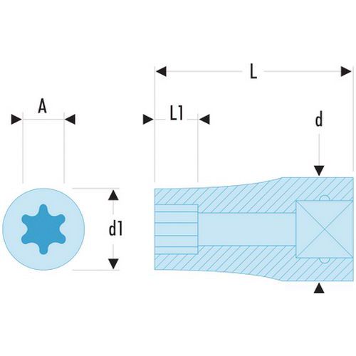 Chaves de caixa 1/4 Torx®, N.º de faces: 6, Ref. Fabricante: RTX.7, Prof. útil: 0.36 cm, Comp.: 2.2 cm