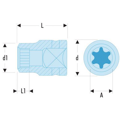 Chaves de caixa de impacto 1/2 Torx®, N.º de faces: 6, Ref. Fabricante: NSTX.12, Comp.: 3.8 cm