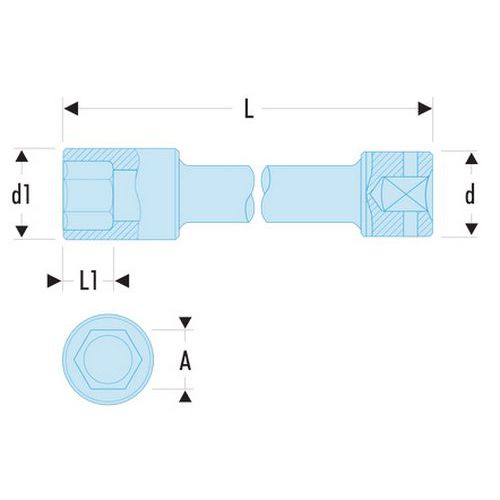 Chaves de caixa impacto 1 extra-longas sextavadas métricas, N.º de faces: 6, Ref. Fabricante: NM.32ELA