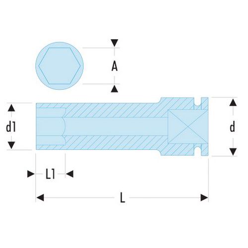 Chaves de caixa impacto 1 longas sextavadas métricas, N.º de faces: 6, Ref. Fabricante: NM.60LA