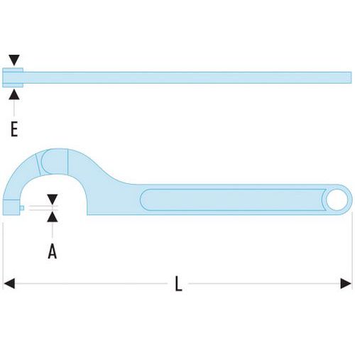 - Concepção e vantagens idênticas às da chave 125A , mas equipadas com pinos amovíveis para manobrar porcas com furos.