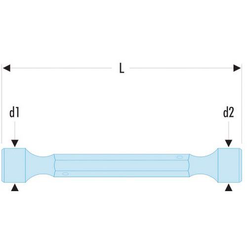 - Chaves tubulares com cabo T duplas: a abertura completa da chave permite a passagem das hastes roscadas muito longas.