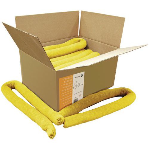 Chouriço absorvente flexível, adapta-se à forma pretendida. Absorve e retém os líquidos de produtos químicos e perigosos. Ideal para a cintagem de zonas de descargas no solo. Todos os produtos Manutan são testados e aprovados pelas nossas equipas.
