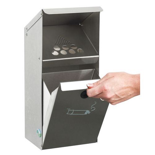 | Nome do artigo | Cinzeiro de parede, Cinzeiro cap.: 3.7 L, Material: Inox, Cores: Cinzento, Altura: 41 cm, Largura: 15 cm |