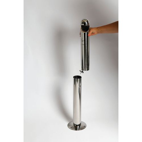 | Nome do artigo | Cinzeiro em aço inoxidável com tampa, Cinzeiro cap.: 1.6 L, Cores: Prata, Altura: 92 cm, Largura: 17.6 cm |