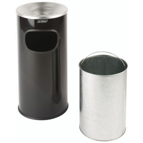 | Nome do artigo | Cinzeiro e caixote do lixo, Cinzeiro cap.: 0.3 L, Caixote de lixo cap.: 30 L, Cores: Preto, Material: Aço |