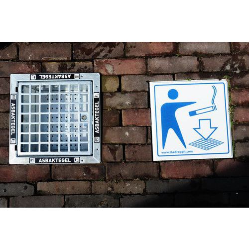 Resistente à corrosão e equipado com uma grelha, ideal para pequenos resíduos e beatas de cigarro.