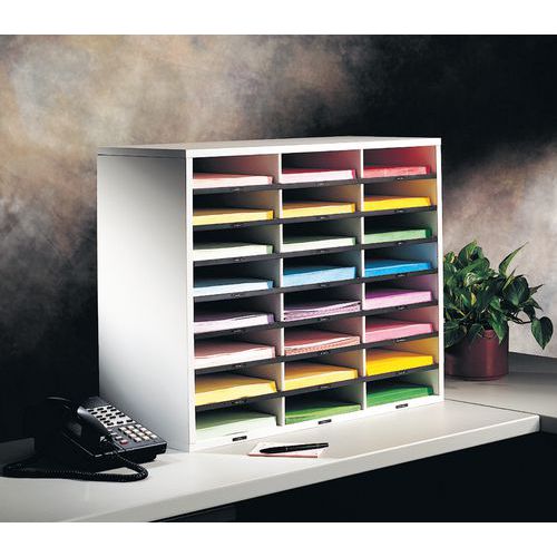 | Nome do artigo | Classificador com 24 compartimentos – cinzento – Fellowes, Material: Aglomerado, Cores: Cinzento claro |