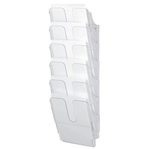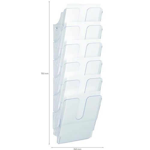 Classificador de parede elegante para documentos com um formato máximo de 24 x 32 cm. Fixação individual ou em grupo: os compartimentos podem ser fixados em separado, lado a lado ou uns em cima dos outros. Acabamento de qualidade para valorizar as suas informações em locais abertos ao público. A abertura em V permite o excelente manuseamento de pequenos documentos.