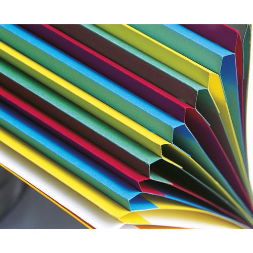 - Classificador de grande capacidade com lombada extensível com dobra.