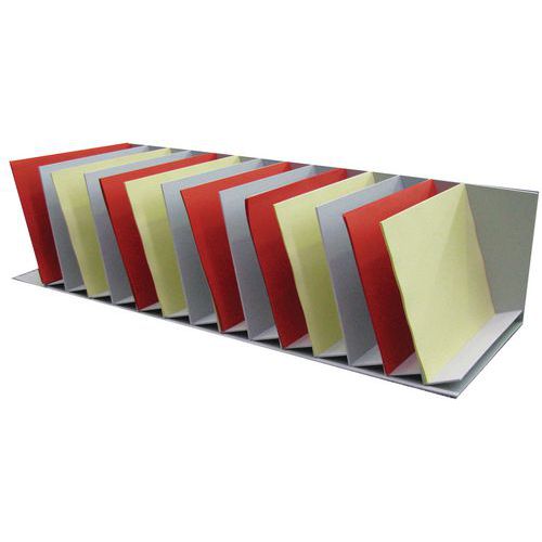 Otimize a arrumação dos seus armários graças ao classificador vertical com divisórias inclinadas. Para colocar nas prateleiras dos armários para um acesso rápido aos seus documentos.