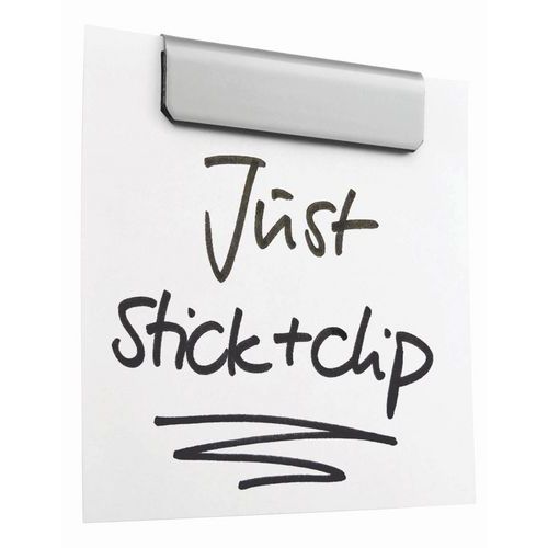 Clipe de fixação adesivo, fácil de aplicar. Fornecido em lotes de 5. Aplicação em segundos: – Retirar a película protetora – Colar o clipe – Inserir a nota
