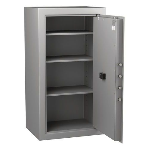 Cofre-forte série Vulcain de 40 a 205 litros. Proteção anti-intrusão em conformidade com a norma alemã VDMA, nível B. Blindagem antiperfuração em manganês do sistema de bloqueio. Prateleira regulável em altura. Entrega mediante agendamento prévio no local definido pelo cliente com recolha de embalagens para reciclagem. Rés-do-chão com um máximo de 2 degraus ou andar com elevador. Máximo de 20 metros de distância. Para todos os pedidos de entrega mais específicos, contacte o nosso serviço de apoio ao cliente (locais de acesso difícil, íngremes ou adversos). VDS