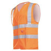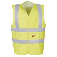 Colete de alta visibilidade sem mangas e decote em V. Fecho com fita autoaderente. Faixas retrorrefletoras ignífugas (50 mm). Antiestática. Costuras pespontadas.
