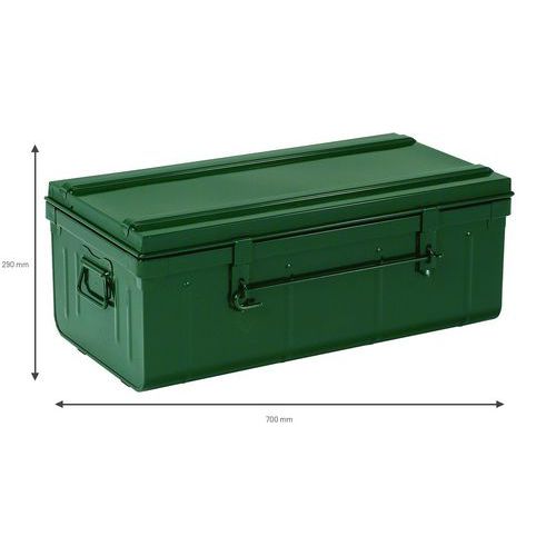 Caixa ultrarresistente em material de chapa de aço XC espessura de 5/10 mm. Resistência à sobreposição graças aos reforços superiores soldados. Fundo com outros reforços soldados para uma proteção acrescida contra choques. Conceção inteligente: robusto, mas leve, graças às paredes com nervuras. Modelo de caixa depositada e patenteada, garantindo um fabrico francês de qualidade. Organize, arquive, proteja e transporte vezes sem conta