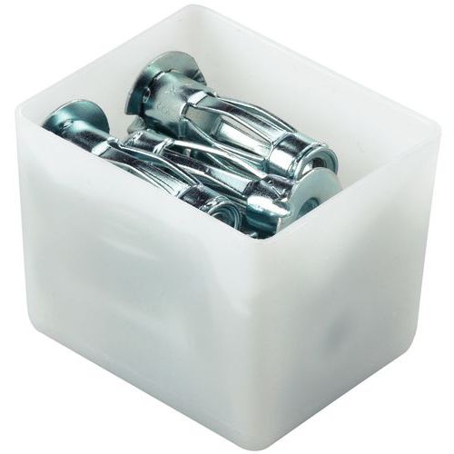 Compartimentos amovíveis brancos de formatos diversos para diferentes modelos de blocos-gavetas.