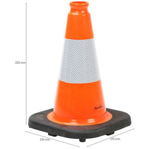 | Nome do artigo | Cone de sinalização com 1 faixa refletora, Cores: Laranja fluorescente, Altura: 300 mm, Comprimentos: 215 mm |