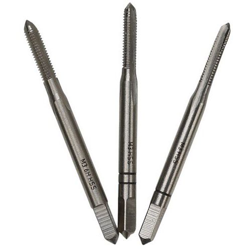 Conjunto de roscas manuais em HSS retificado. Para a abertura de roscas de atravessamento ou furos cegos em aço sem liga ou de baixa liga. Utilização em ferro fundido moldado e em metais não ferrosos.