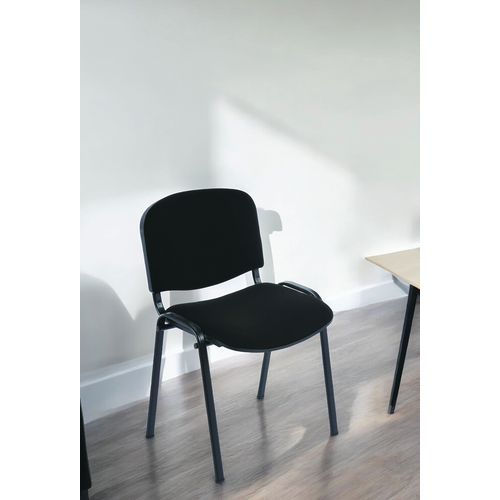 Conjunto de 5 cadeiras Prismo empilháveis para permitir poupar espaço. Enchimento de espuma de poliéter de elevada resistência, 2,5 cm de espessura, densidade de 30 kg/m³, em suporte de contraplacado de madeira. Tecido: 70% de acrílico, 30% de algodão. Apoio do assento e do espaldar em ABS preto resistente a impactos. Base em tubo longo de 30 x 15 mm, lacada a epóxi. Conjunto de 5 cadeiras Prismo empilháveis para permitir poupar espaço. Enchimento de espuma de poliéter de elevada resistência, 2,5 cm de espessura, densidade de 30 kg/m³, em suporte de contraplacado de madeira. Tecido: 70% de acrílico, 30% de algodão. Apoio do assento e do espaldar em ABS preto resistente a impactos. Base em tubo longo de 30 x 15 mm, lacada a epóxi.