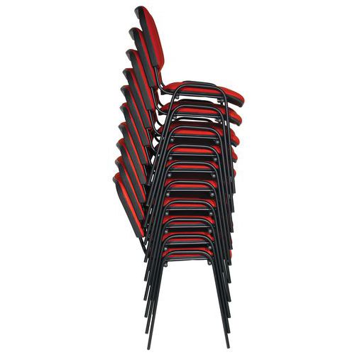 Conjunto de 5 cadeiras Prismo empilháveis para permitir poupar espaço. Enchimento de espuma de poliéter de elevada resistência, 2,5 cm de espessura, densidade de 30 kg/m³, em suporte de contraplacado de madeira. Tecido: 70% de acrílico, 30% de algodão. Apoio do assento e do espaldar em ABS preto resistente a impactos. Base em tubo longo de 30 x 15 mm, lacada a epóxi. Conjunto de 5 cadeiras Prismo empilháveis para permitir poupar espaço. Enchimento de espuma de poliéter de elevada resistência, 2,5 cm de espessura, densidade de 30 kg/m³, em suporte de contraplacado de madeira. Tecido: 70% de acrílico, 30% de algodão. Apoio do assento e do espaldar em ABS preto resistente a impactos. Base em tubo longo de 30 x 15 mm, lacada a epóxi.