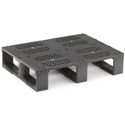 Paletes robustas e leves multiusos, com 3 suportes, económicas e sem necessidade de manutenção. Design homogéneo monobloco. Fabricada em PP resistente a impactos, sem reforços metálicos, esta palete é ideal para aplicações semi-higiénicas e para uma elevada rotatividade de utilização, como a utilização comum em grupos abertos ou fechados. Temperaturas de utilização de 0° C a 40 °C. Resistente a ácidos, solventes, insetos e bactérias.