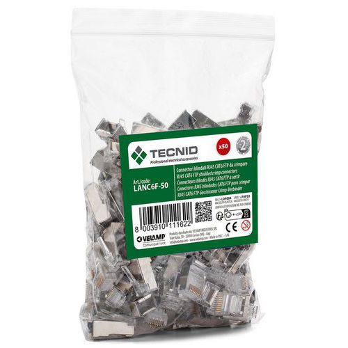 | Nome do artigo | Conjunto de 50 conetores blindados de engastar para cabo CAT6 FTP – Velamp |