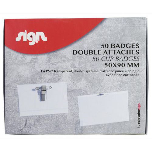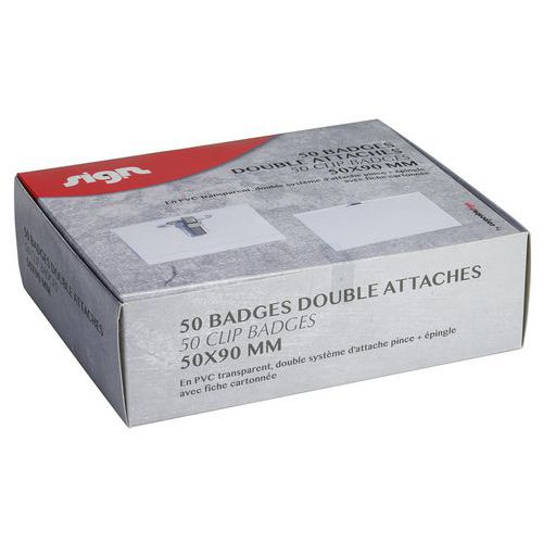 | Nome do artigo | Conjunto de 50 crachás de clipe duplo – transparente – Sign |
