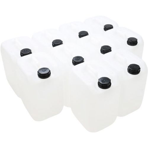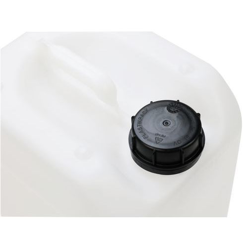 Jerricã de plástico com homologação para o transporte de mercadorias. Elevada resistência a quedas, pressão hidráulica e empilhamento. Embalagem perfeitamente estanque: resultado comprovado do teste de pressão de ar. Jerricã de transporte e movimentação de elevado conforto graças à pega superior. Abertura grande com tampa de rosca, articulada e indicador de abertura.