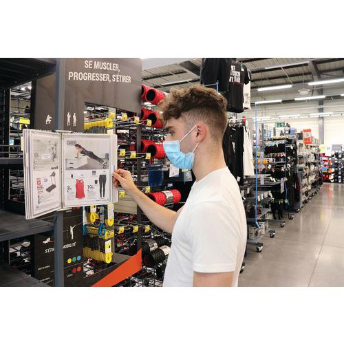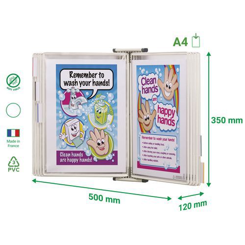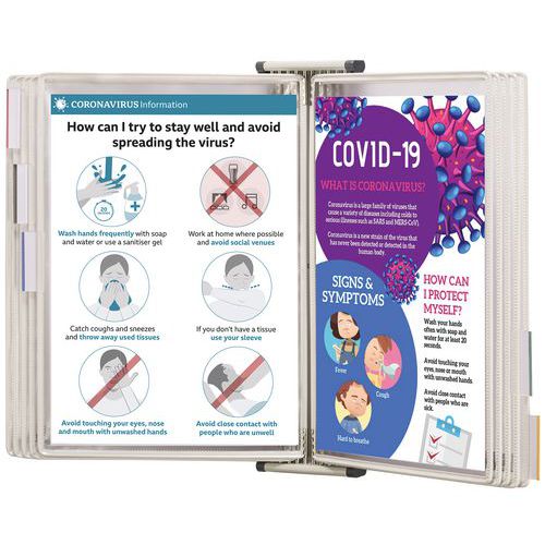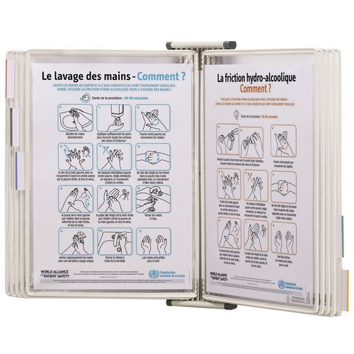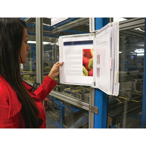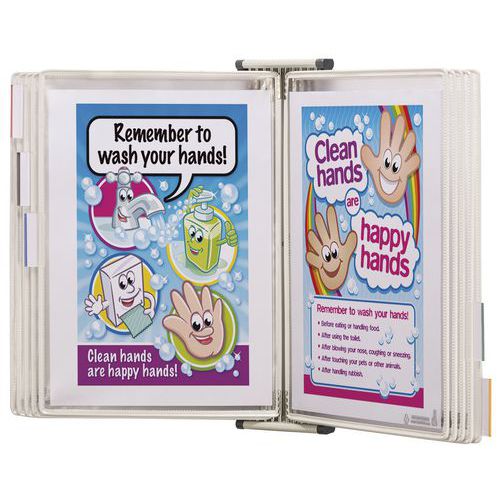 Concebido para apresentar e organizar informações em papel em locais com risco de crescimento de bactérias.
