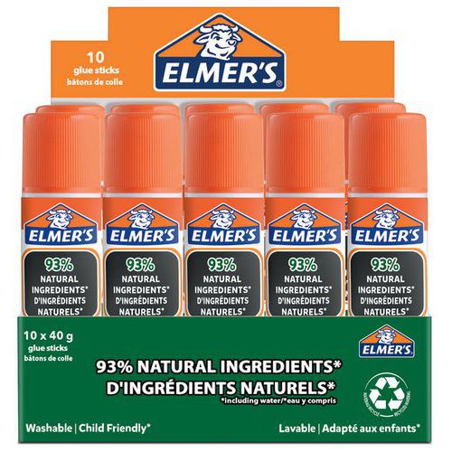 Conjunto de 24 tubos de cola de 8 g Elmer's. Lavável e adequado para crianças. Uma cola 93% natural