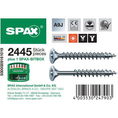 | Nome do artigo | Conjunto L-Boxx de parafusos de montagem TX de cabeça escareada, Material: Aço, Tipo de soporte: Madeira |