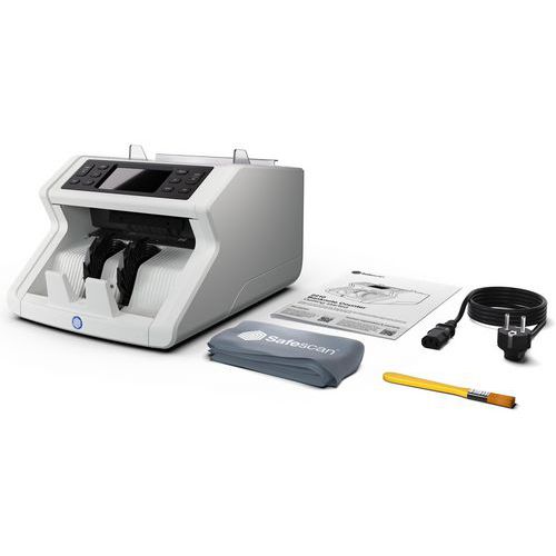 - Contador de notas de banco ordenadas Safescan que conta a quantidade de notas ordenadas para todas as divisas.