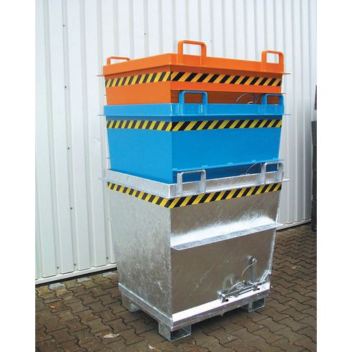 Contentor de abertura pelo fundo azul da Bauer. Estrutura estável, com perfil reforçado para maior durabilidade. Fácil de deslocar, graças à compatibilidade com um empilhador ou uma grua. Abertura simples e fácil do fundo através de corda. Descarga efetuada de uma só vez graças à abertura pelo fundo.