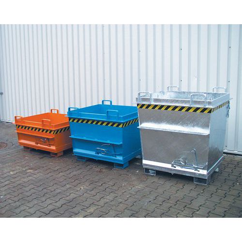 Contentor de abertura pelo fundo azul da Bauer. Estrutura estável, com perfil reforçado para maior durabilidade. Fácil de deslocar, graças à compatibilidade com um empilhador ou uma grua. Abertura simples e fácil do fundo através de corda. Descarga efetuada de uma só vez graças à abertura pelo fundo.