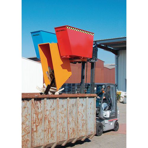 - O contentor desloca-se facilmente graçasao suporte para empilhador.