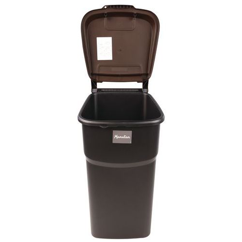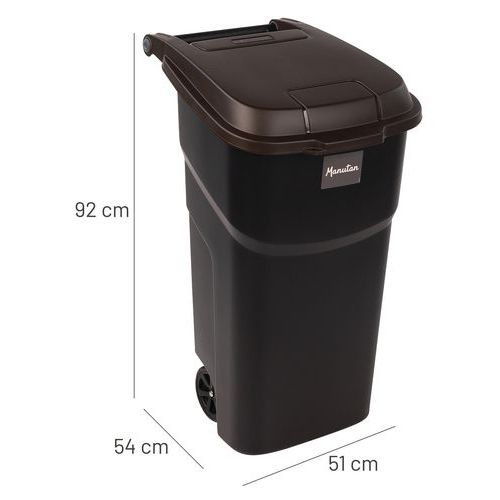 | Nome do artigo | Contentor com tampa castanha 100 L – Manutan Expert, Capacidade: 100 L, Abertura: Frontal, Material: Plástico |