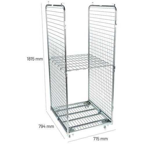 | Nome do artigo | Contentor móvel com 2 lados e 1 prateleira – capacidade de 400 kg, Capacidade: 400 kg, Altura total: 1815 mm |