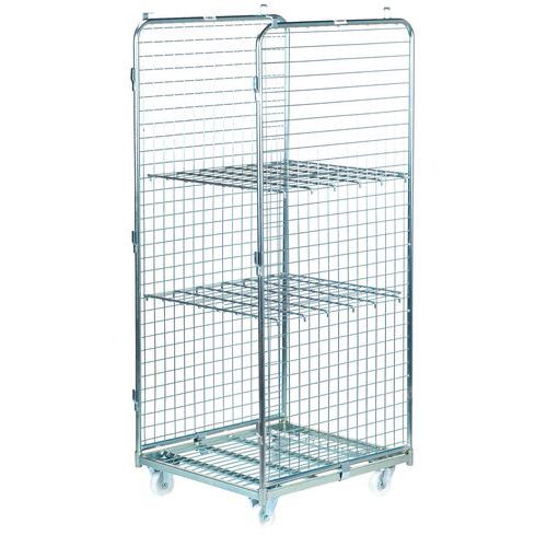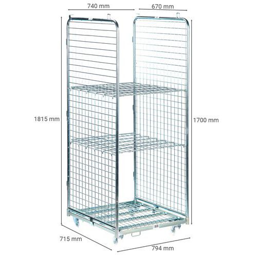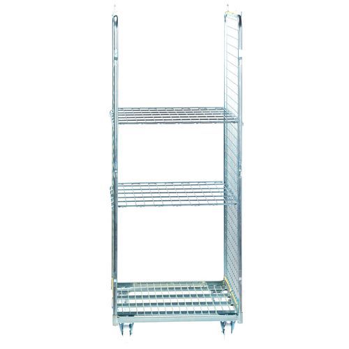 | Nome do artigo | Contentor móvel com 2 lados e 2 prateleiras – capacidade de 400 kg, Capacidade: 400 kg, Altura total: 1815 mm |