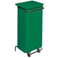 Pedal e punho em aço com revestimento de pó epóxi. Grande acessibilidade graças a uma abertura da tampa superior a 80°. Parte frontal amovível para facilitar a saída do saco. Fecho da parte frontal e fixação por fita elástica. Grande pedal para utilização em conformidade com o método HACCP. Duas rodas de borracha para maior manobrabilidade.