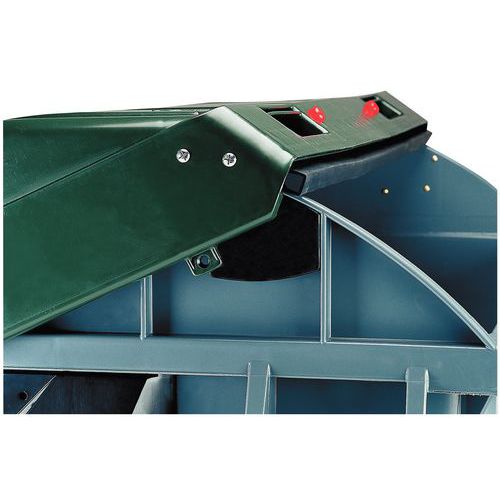 - Contentor sólido e resistente às intempéries graças à construção em polietileno de alta densidade.
