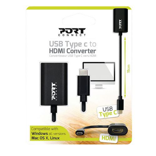 | Nome do artigo | Conversor Type-C para HDMI – Port Connect, Cabo comp.: 15 cm, Ref. Fabricante: 900124 |