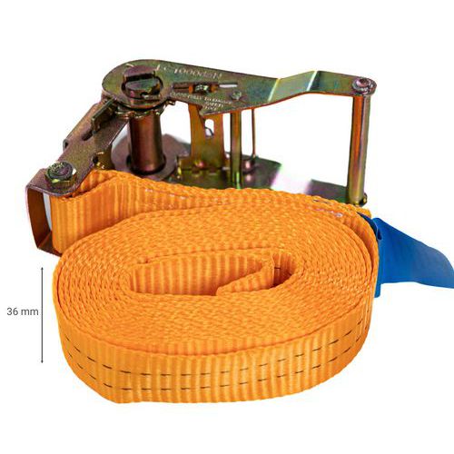 Correia de estiva contínua que também se utiliza na estiva de cargas leves ou médias em veículos, reboques ou contentores. Sistema de fecho com esticador de roquete para aperto progressivo da carga e regulação contínua da correia. Excelente robustez, imputrescível e alta resistência ao desgaste. Coeficiente de segurança 2 com carga de rutura de 2000 kg em conformidade com a norma EN1295-2. Também concebido para a produção de embalagens fáceis de armazenar ou manusear.