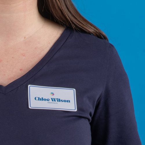 | Nome do artigo | Crachá autocolante têxtil com contorno de cor, Cores: Azul/branco, Tipo de fixações: Autocolante |