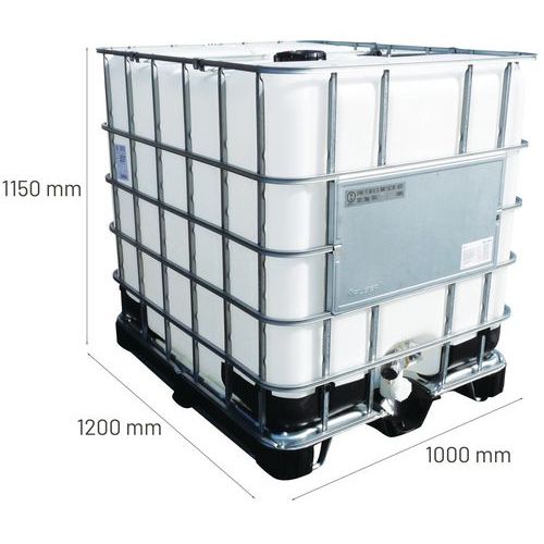 | Nome do artigo | Cuba de transporte 1000 L unicube padrão + palete – Manutan Expert, Capacidade: 1000 L, Altura total: 1150 mm |