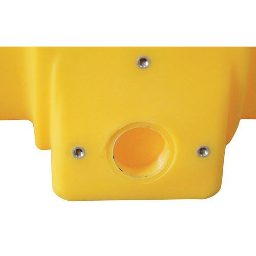 Cuba compacta em polietileno alimentar com centro de gravidade baixo. Abertura de ø 380 mm com tampa montada em dobradiça e manga à prova de ondas. Pés integrados para fixação direta sobre o chassi ou plataforma de um veículo com a ajuda de correias. Cuba em polietileno alimentar com indicador de nível ótico graduado gravado na estrutura. Carga máxima de 1,2 kg/dm³. Esvaziamento total com rosca de 11/4 com bujão obturador. Esvaziamento em retirada com rosca de 2 + encaixes moldados para flange em inox. Cuba de 2000 L: 2 sistemas de esvaziamento lateral adicionais com rosca de 2.