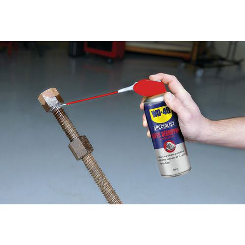 O desbloqueante WD-40 SpecialistTM penetra rapidamente e liberta as peças com maior eficácia.