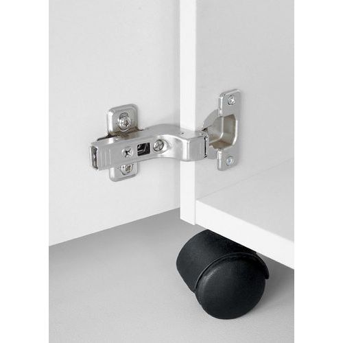 Móvel em madeira com porta, montado sobre rodízios. Recipiente prático com pega, com uma capacidade de 165 litros.