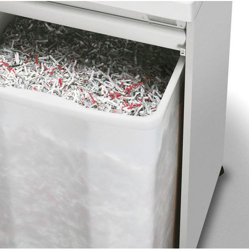 Proteção eletrónica da porta através de contacto magnético, dupla proteção do motor. ECC+ (controlo eletrónico de capacidade): indicadores que indicam a potência utilizada durante a destruição para evitar qualquer risco de encravamentos.