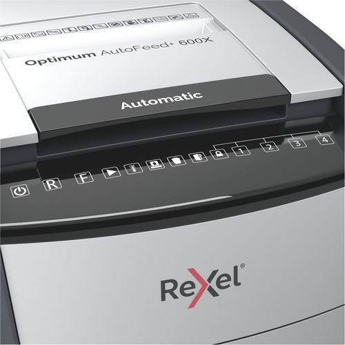 Destruidor de documentos Optimum AutoFeed+ – Rexel, Capacidade de passagem (folhas A4/80 g): 600 Destruidor de documentos Optimum AutoFeed+ – Rexel, Capacidade de passagem (folhas A4/80 g): 600