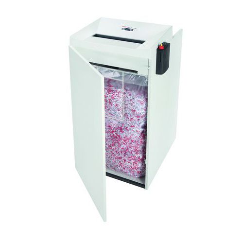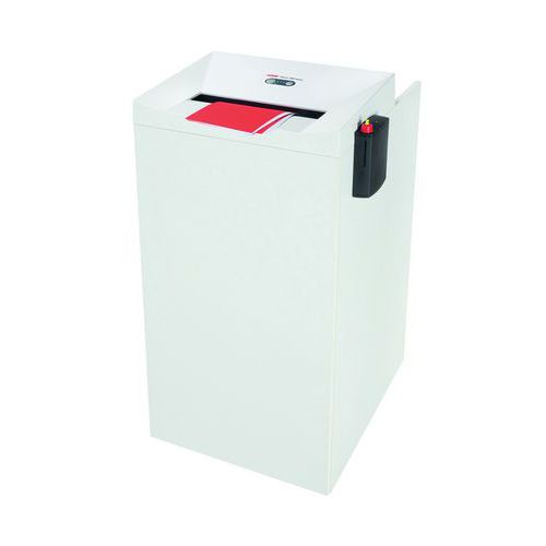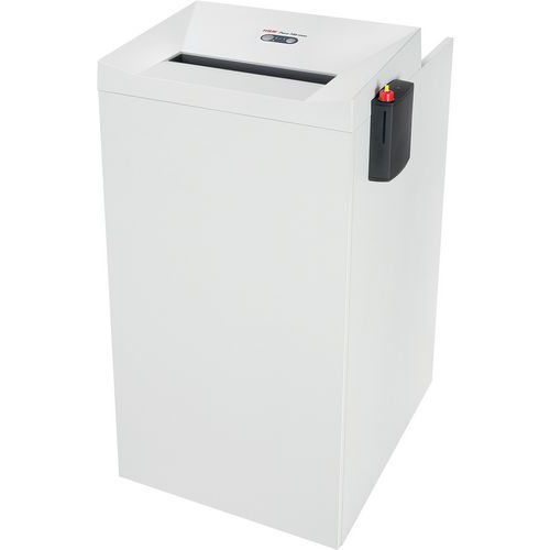 Destruidor de documentos centralizado e equipado com uma caixa de 145 L e um motor com uma potência de 590 W.
